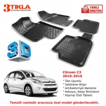 Citroen C3 2010-2016 Premium 3D Havuzlu Paspas Seti